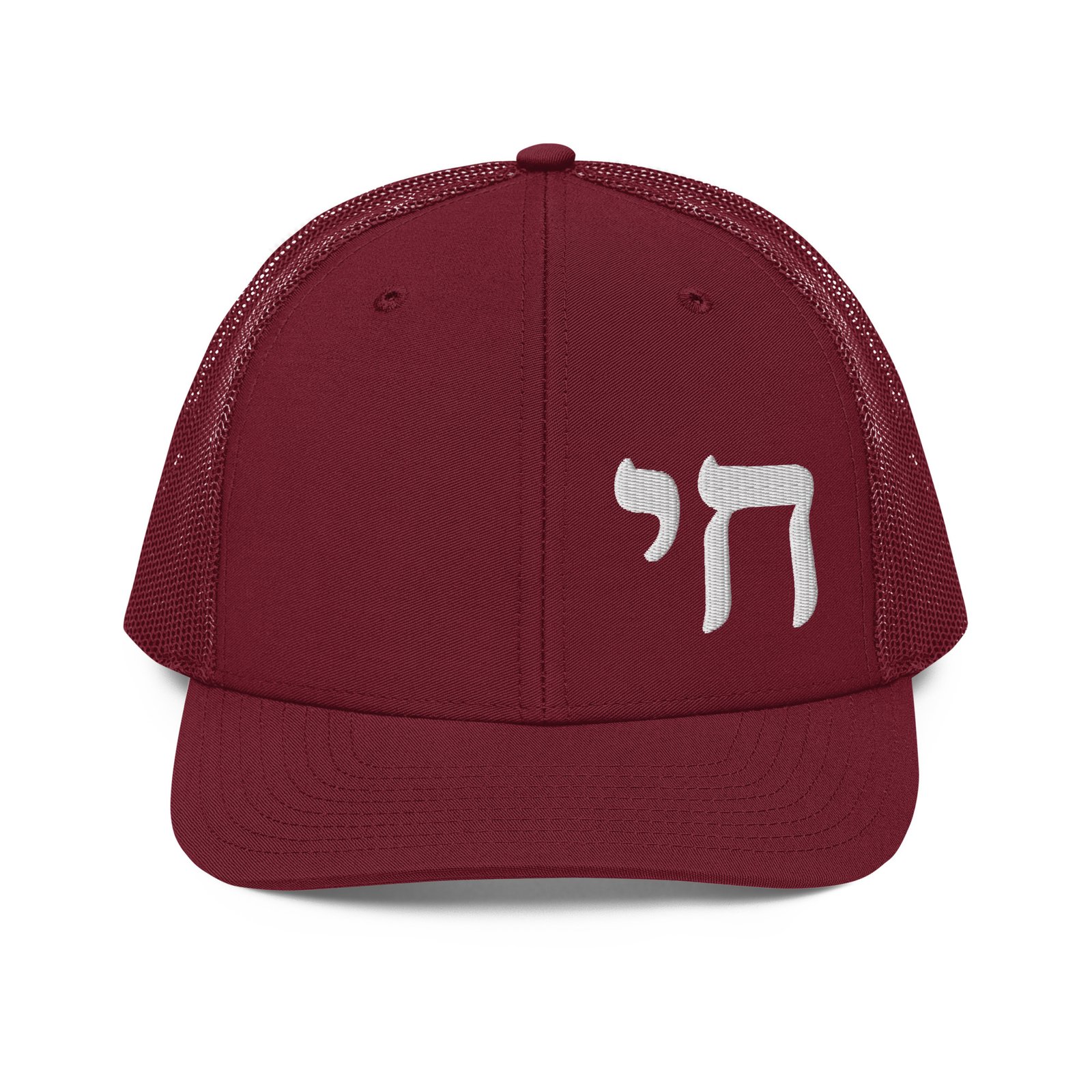 L’Chaim, To life!! Live it up in this stylish trucker cap with the Hebrew word for life.